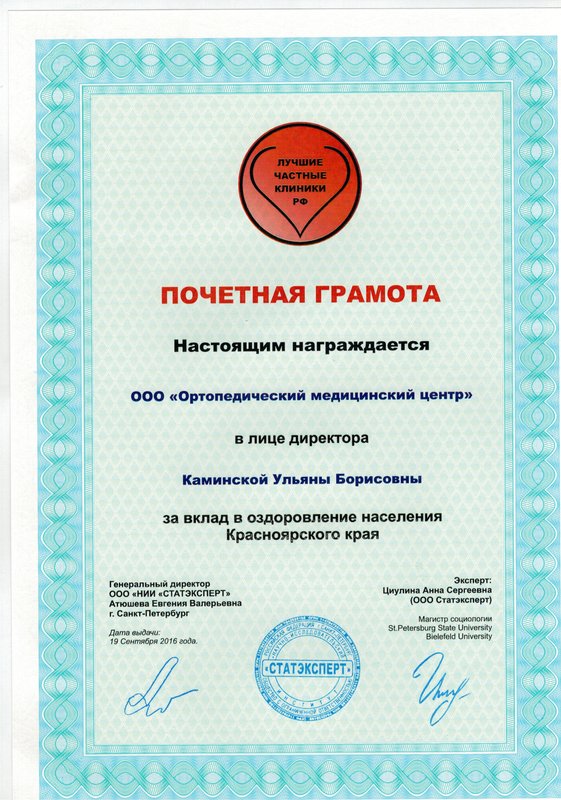 Хочется очень поблагодарить докторов (Виктор Михайловича, Ульяну Борисовну, Веру Павловну), массажистов Наталью и Ирину, за их профессионализм, добрые сердца и атмосферу дома в клинике. Обратилась к ним второй раз , первый раз была проблема не большая со спиной. В сентябре этого года обратилась с переломом руки, при которой в краевой больнице мне предложили поменять сустав. Эти чудо доктора не только мне помогли восстановить руку полностью, но и психологически поддержали. Я поздравляю Вас всех с наступающим 2019 годом! Рекомендую всем у кого проблемы в области ортопедии, обращаться в эту клинику, Вам там обязательно помогут.